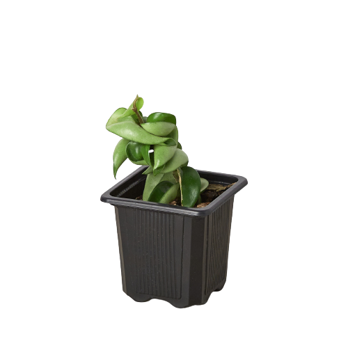 Description: Unique Hindu rope plants, Hoya carnosa compacta, are draping succulent vines that produce clusters of star-shaped waxy flowers. The thick, twisted, curly, cupped leaves of a Hindu rope plant are why it’s often called Krinkle Kurl. Hindu rope plants can be found in solid green or with variegated leaves. This type of hoya plant is very easy to care for as long as you have plenty of light and are careful with your water.