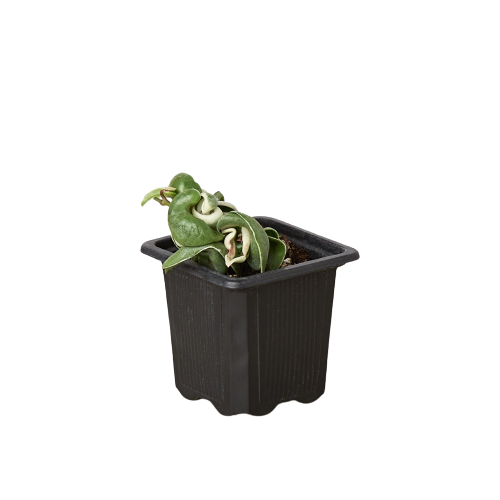 Description: Unique Hindu rope plants, Hoya carnosa compacta, are draping succulent vines that produce clusters of star-shaped waxy flowers. The thick, twisted, curly, cupped leaves of a Hindu rope plant are why it’s often called Krinkle Kurl. Hindu rope plants can be found in solid green or with variegated leaves. This type of hoya plant is very easy to care for as long as you have plenty of light and are careful with your water.